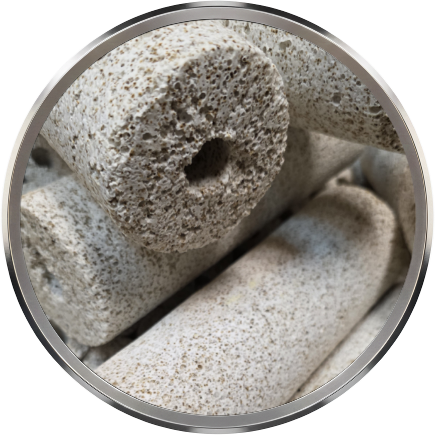 Denitrification in the Core: The rods are extremely porous, creating a significant surface area deep within their core. This ensures the necessary oxygen-poor zones that are essential for the denitrifying bacterial strains. This makes the biological reduction of nitrate —often the most difficult step in water purification— possible in a natural and efficient way.